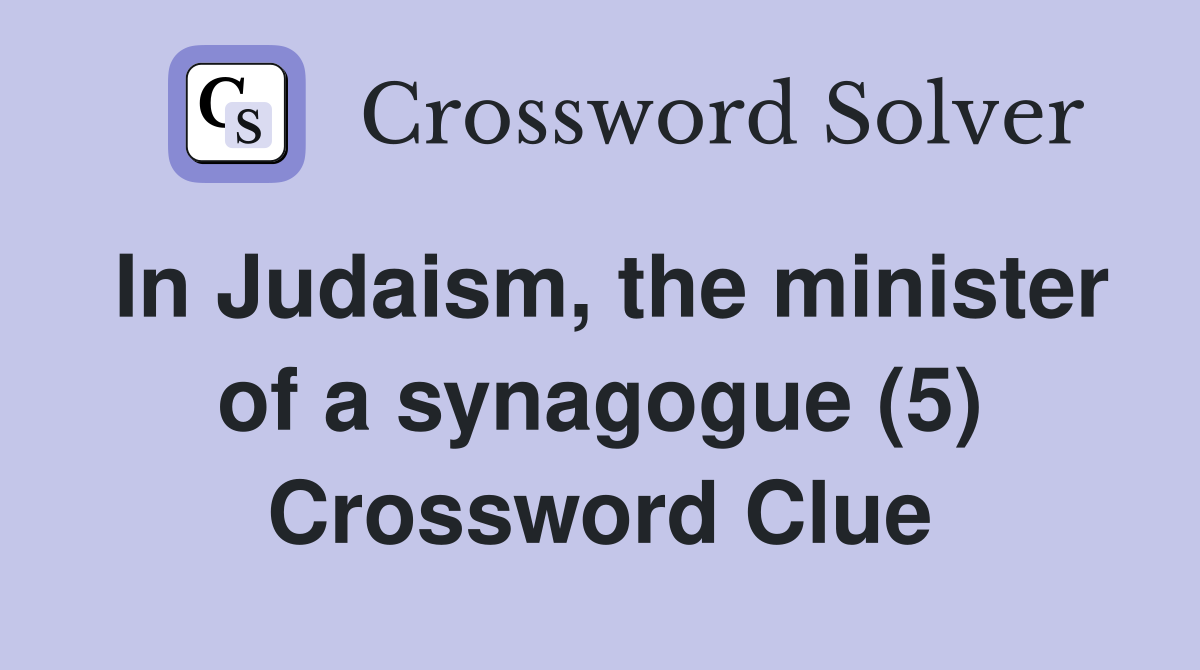 In Judaism the minister of a synagogue (5) Crossword Clue Answers