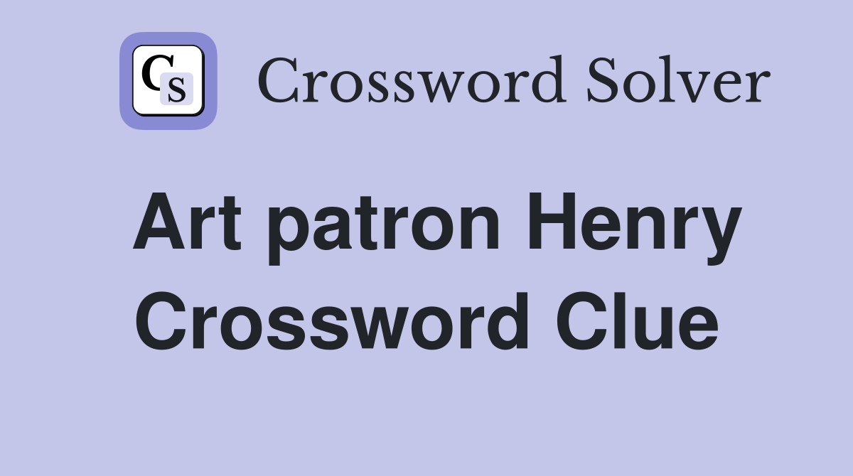 Art patron Henry Crossword Clue Answers Crossword Solver