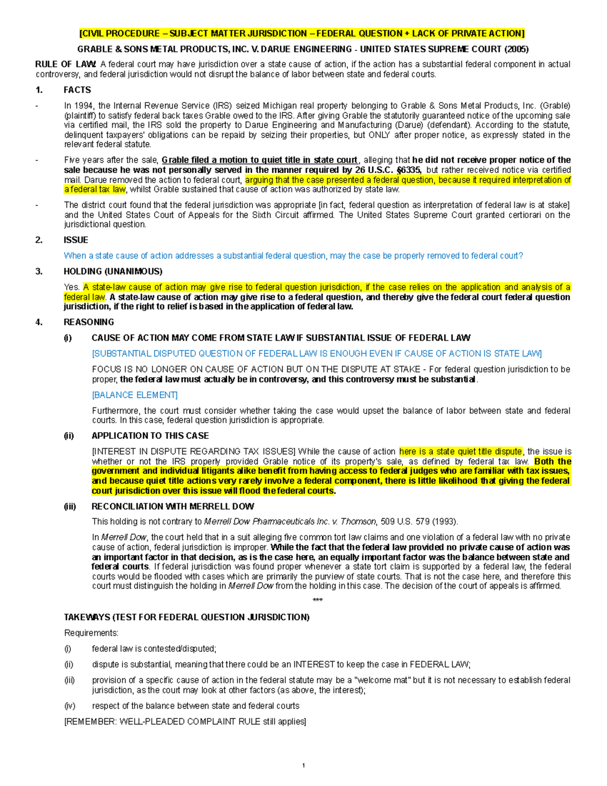 3 Grable metal product v Darue engineering CIVIL PROCEDURE