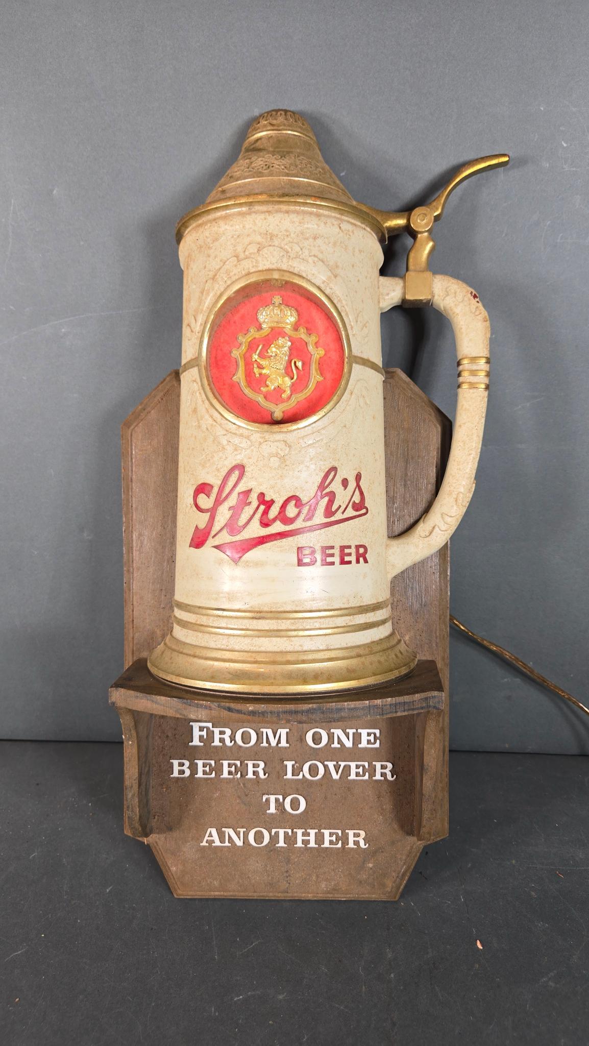 Lot 20321 Three Vintage Electric Stroh #39 s Beer Lighted Bar Signs