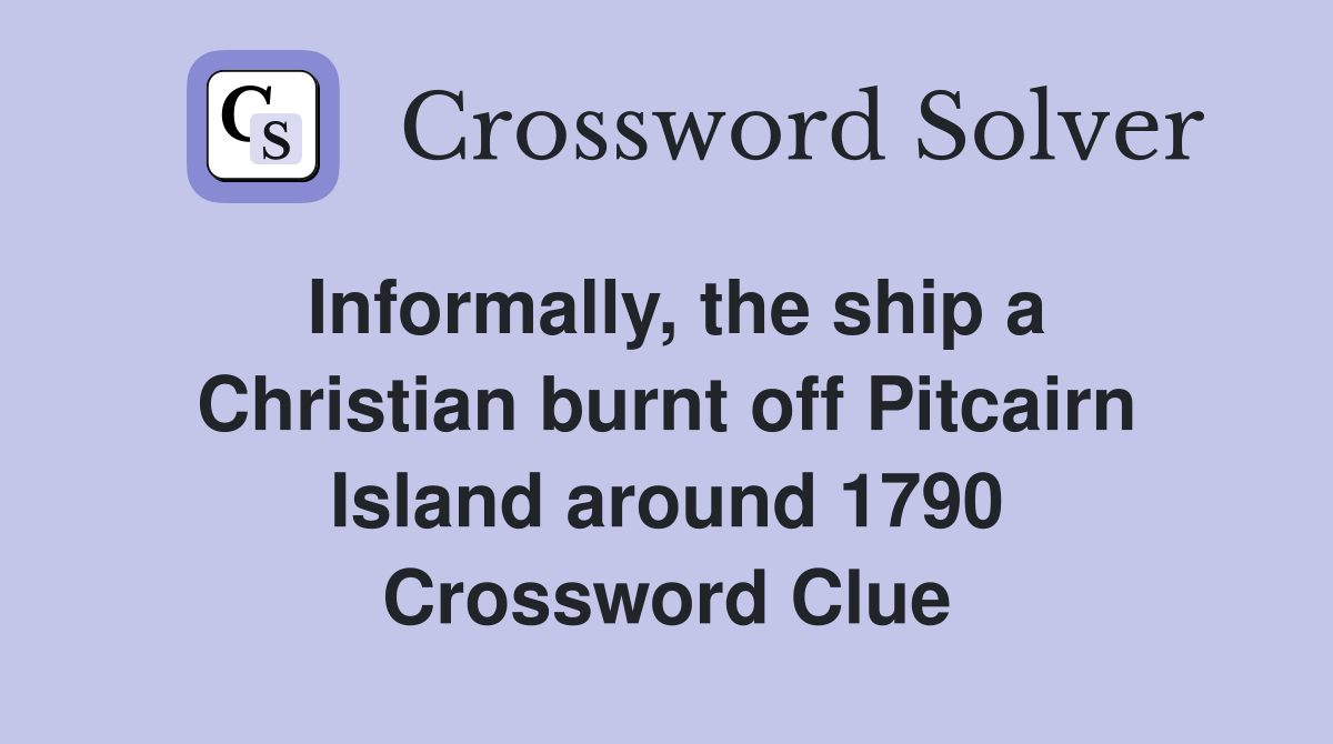Informally the ship a Christian burnt off Pitcairn Island around 1790