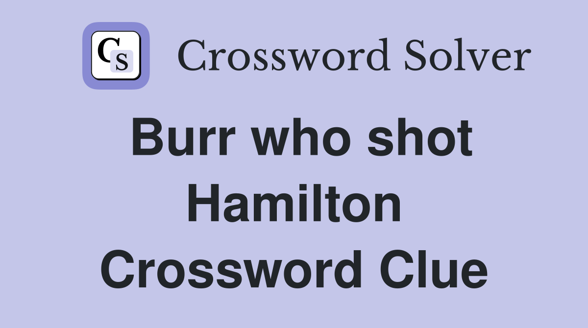 Burr who shot Hamilton Crossword Clue Answers Crossword Solver