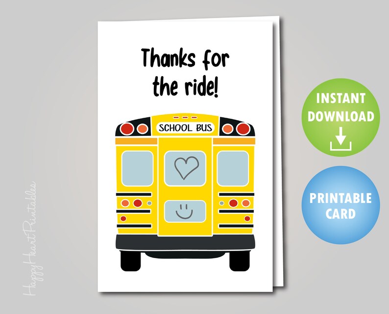 Bus Driver Thank You Card Printable Bus Driver Appreciation Card School