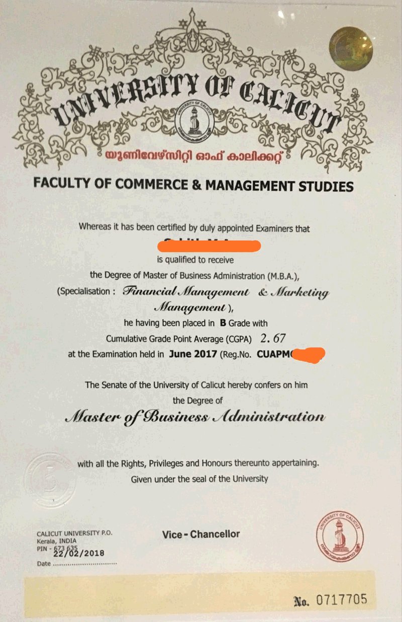 Indian Mba Certificate