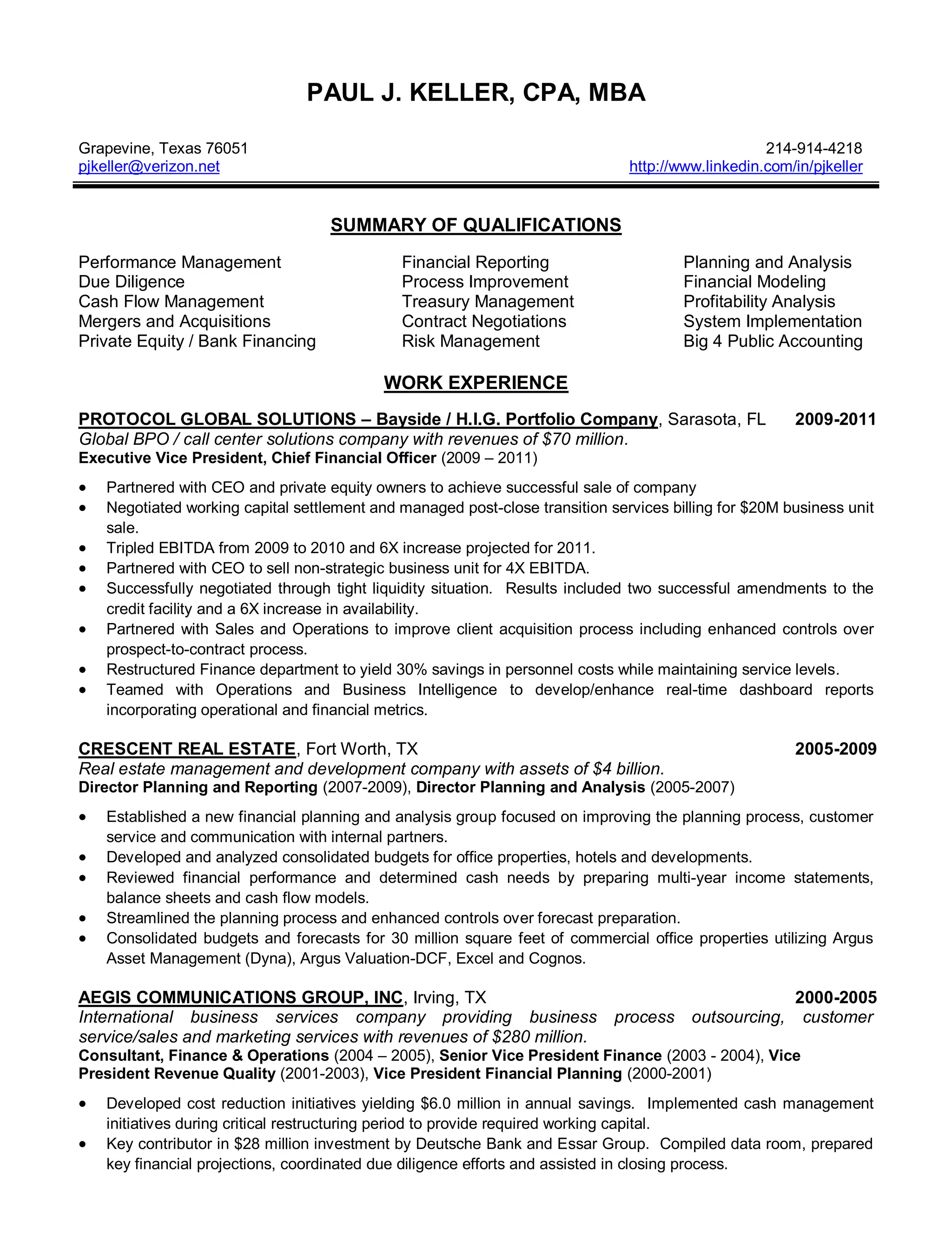 Keller Paul J Resume PDF Business Accounting Finance Business