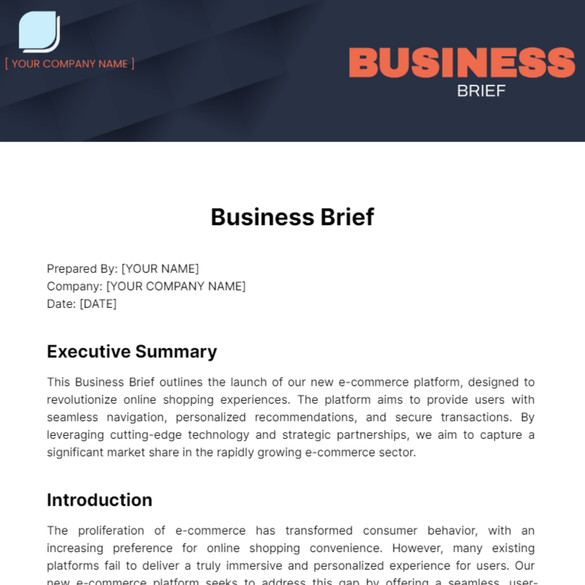 Business Brief Template