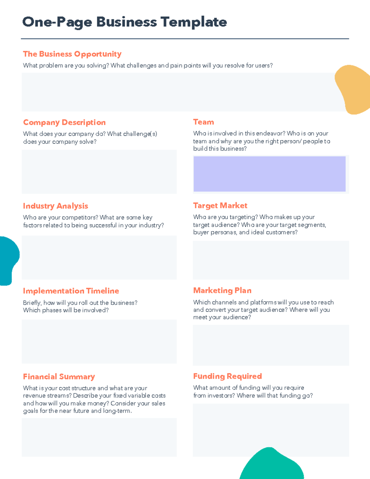 Business Plan Template Hubspot General Assembly inside Business Paln