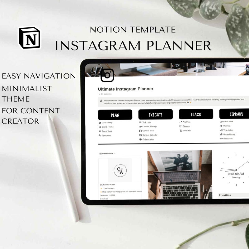 Ultimate Instagram Planner Notion Template Business Content Calendar