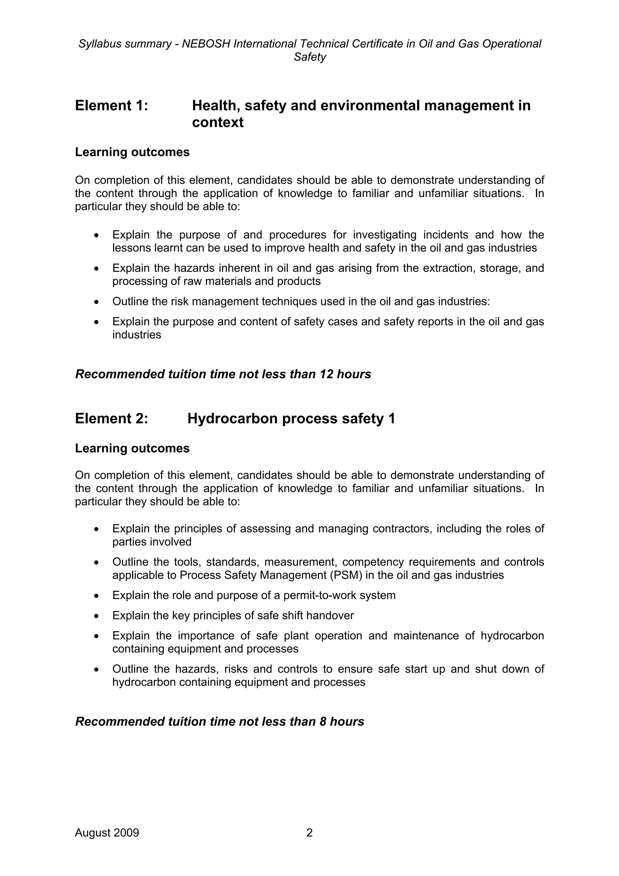 NEBOSH OIL AND GAS TECHNICAL CERTIFICATE IN OPERATIONS SAFETY PDF
