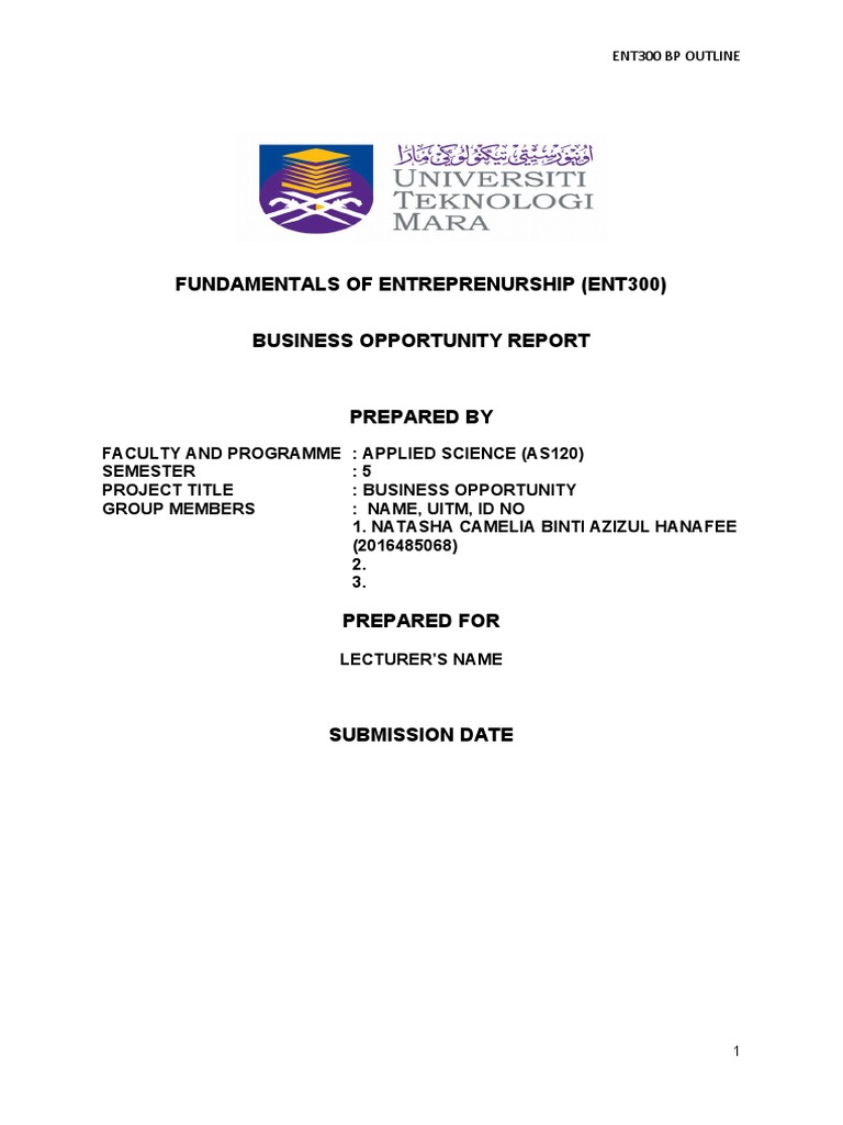 Business Opportunity Template FUNDAMENTALS OF ENTREPRENURSHIP (ENT300
