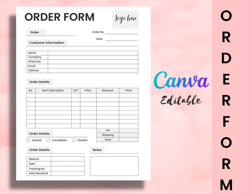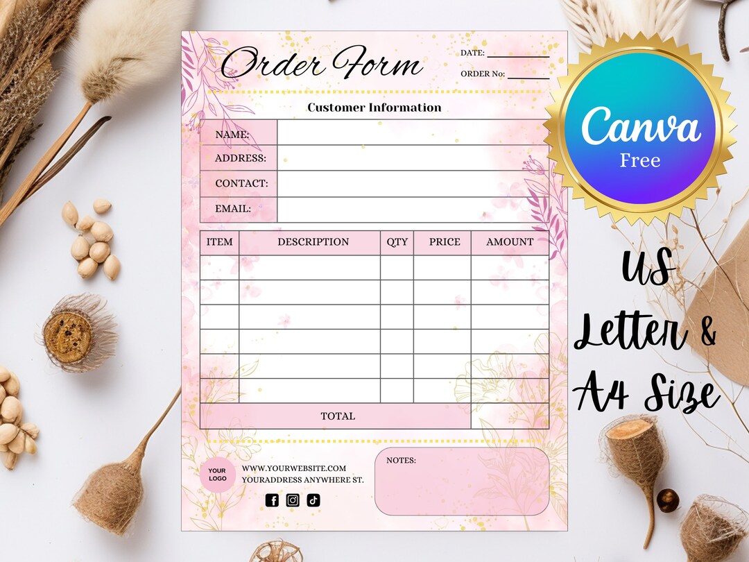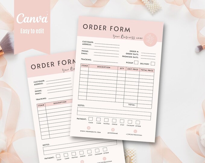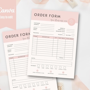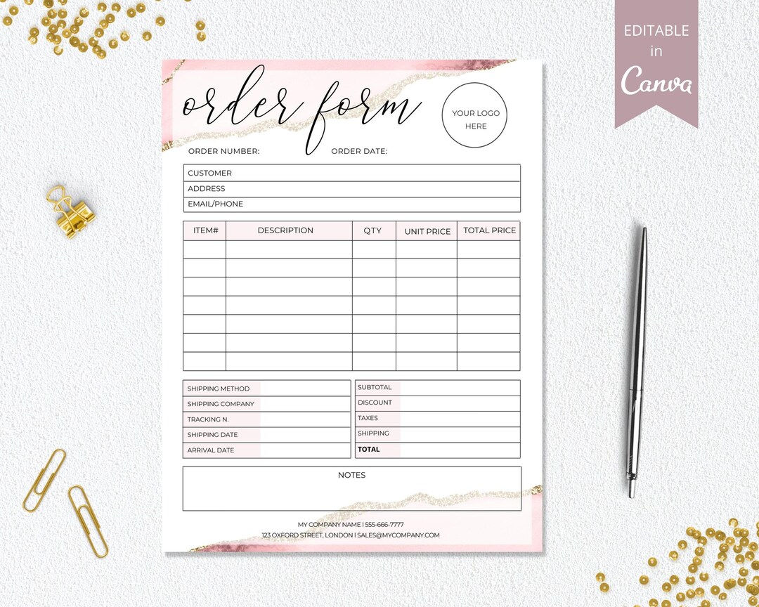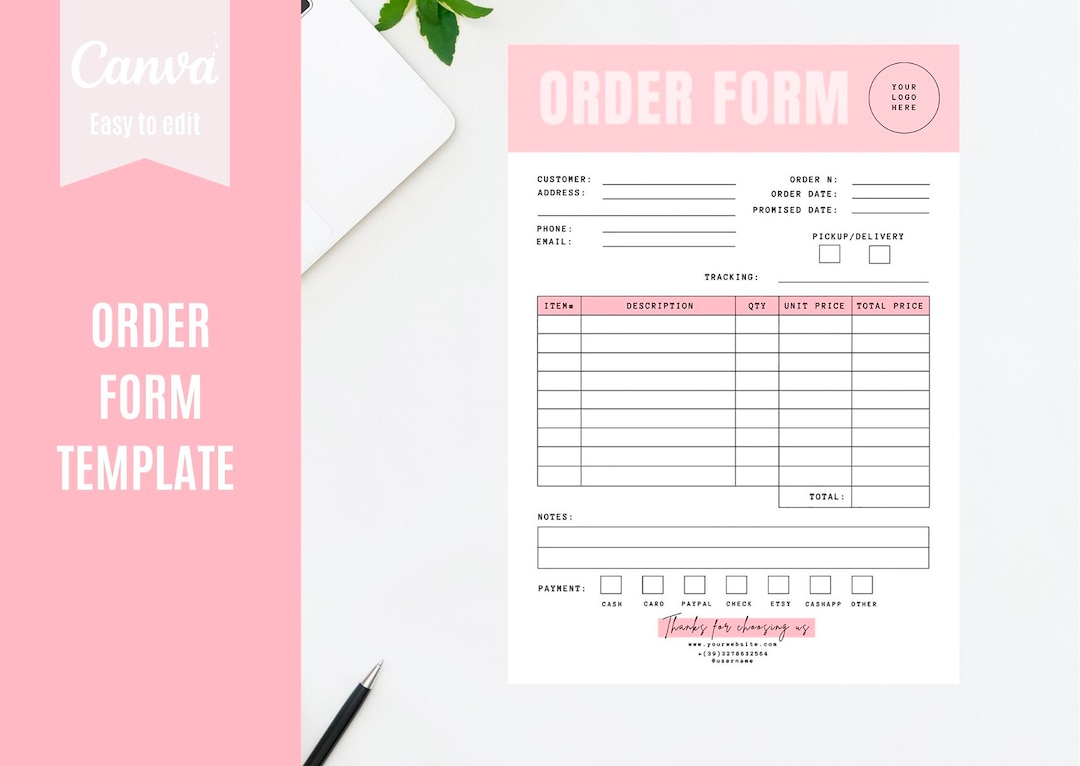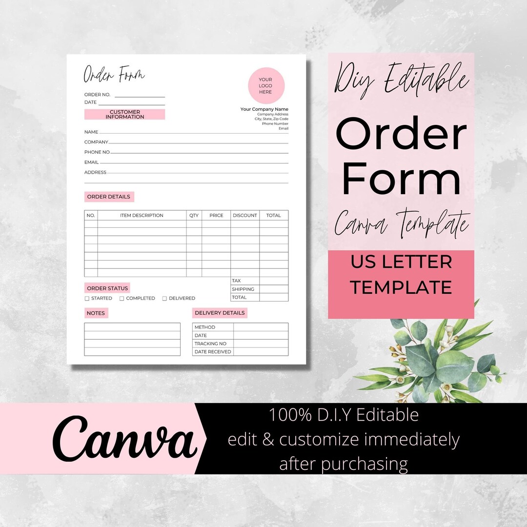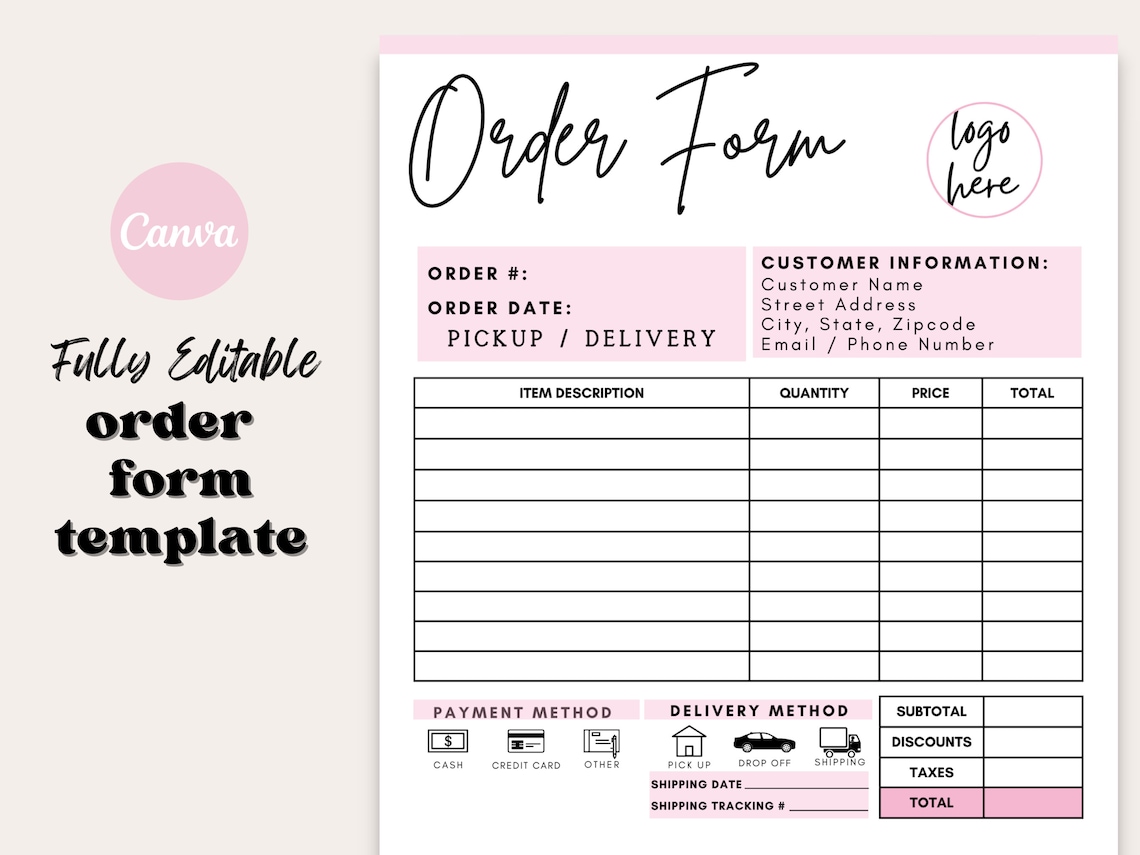 Order Form Template Editable on Canva Printable Pink Small Etsy
