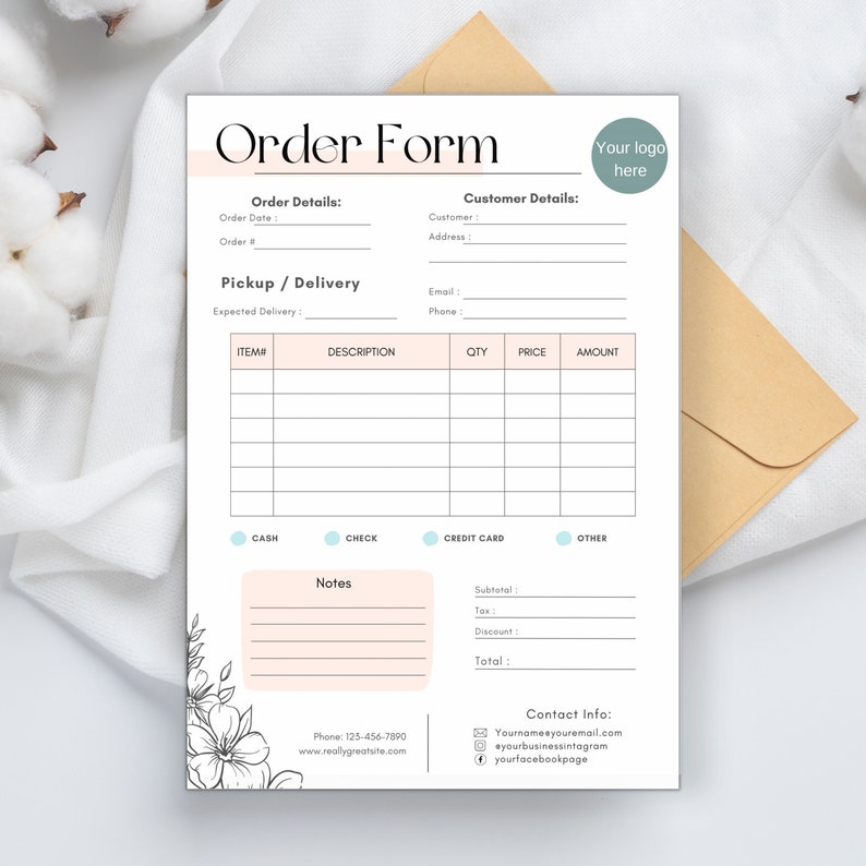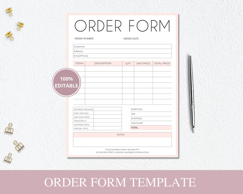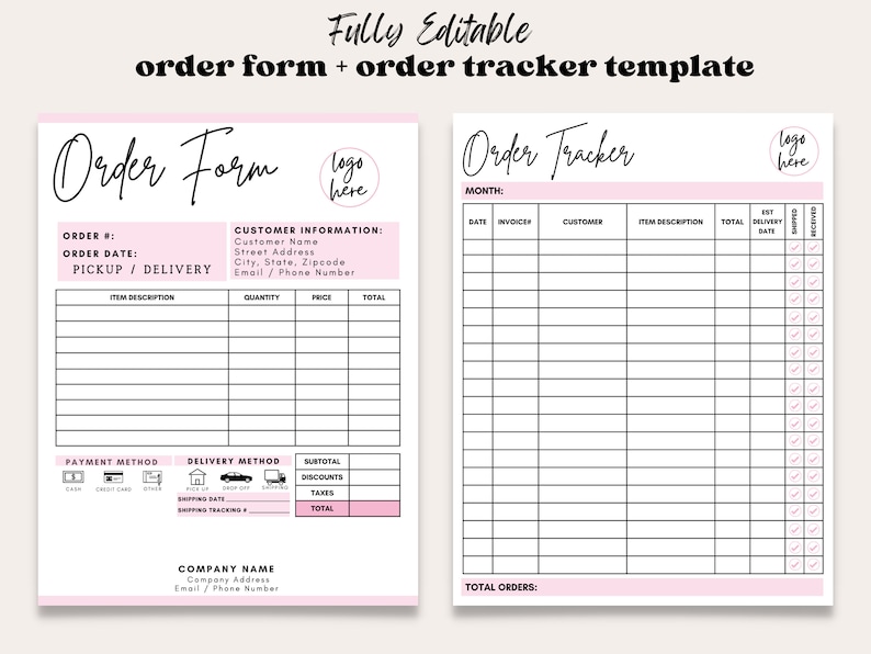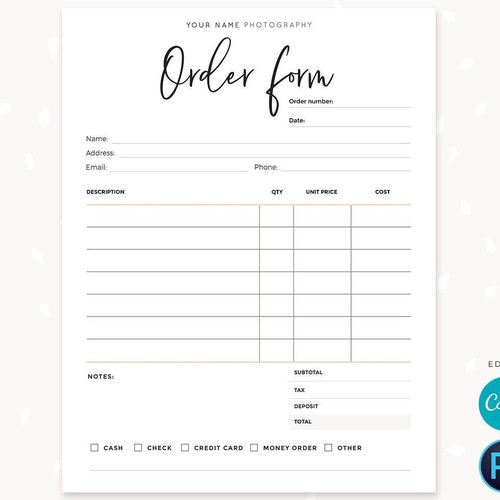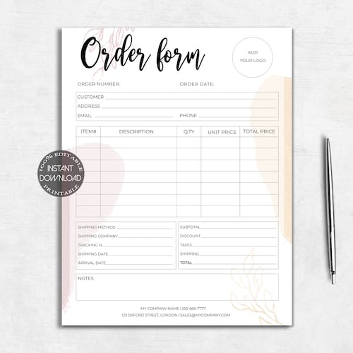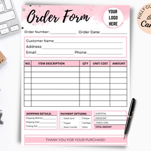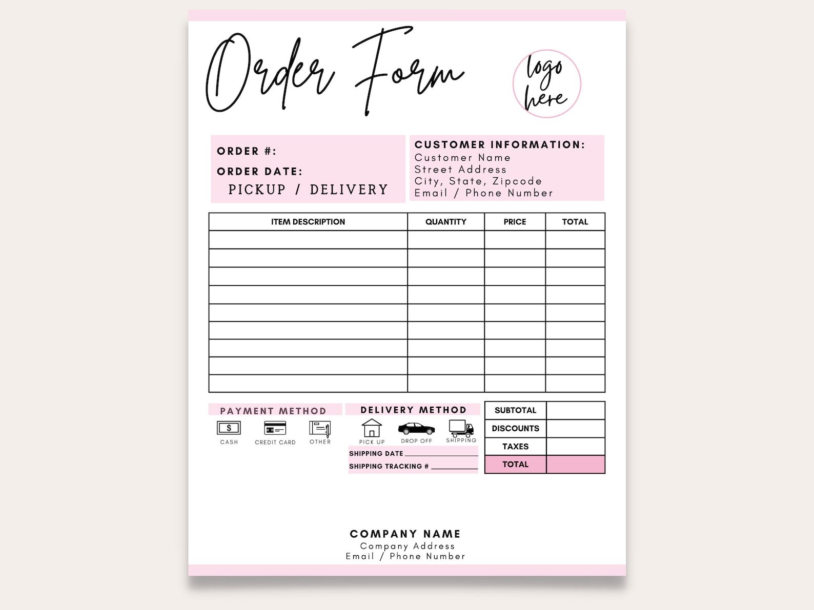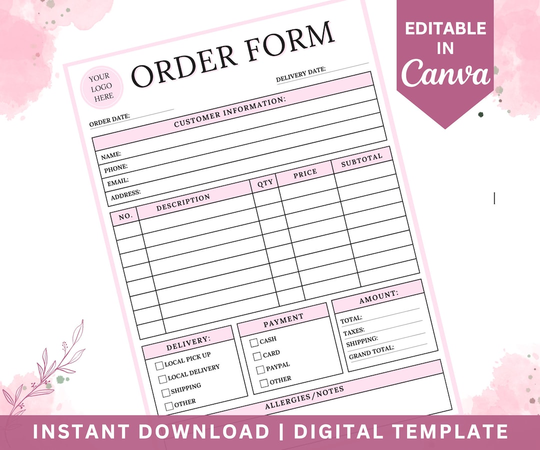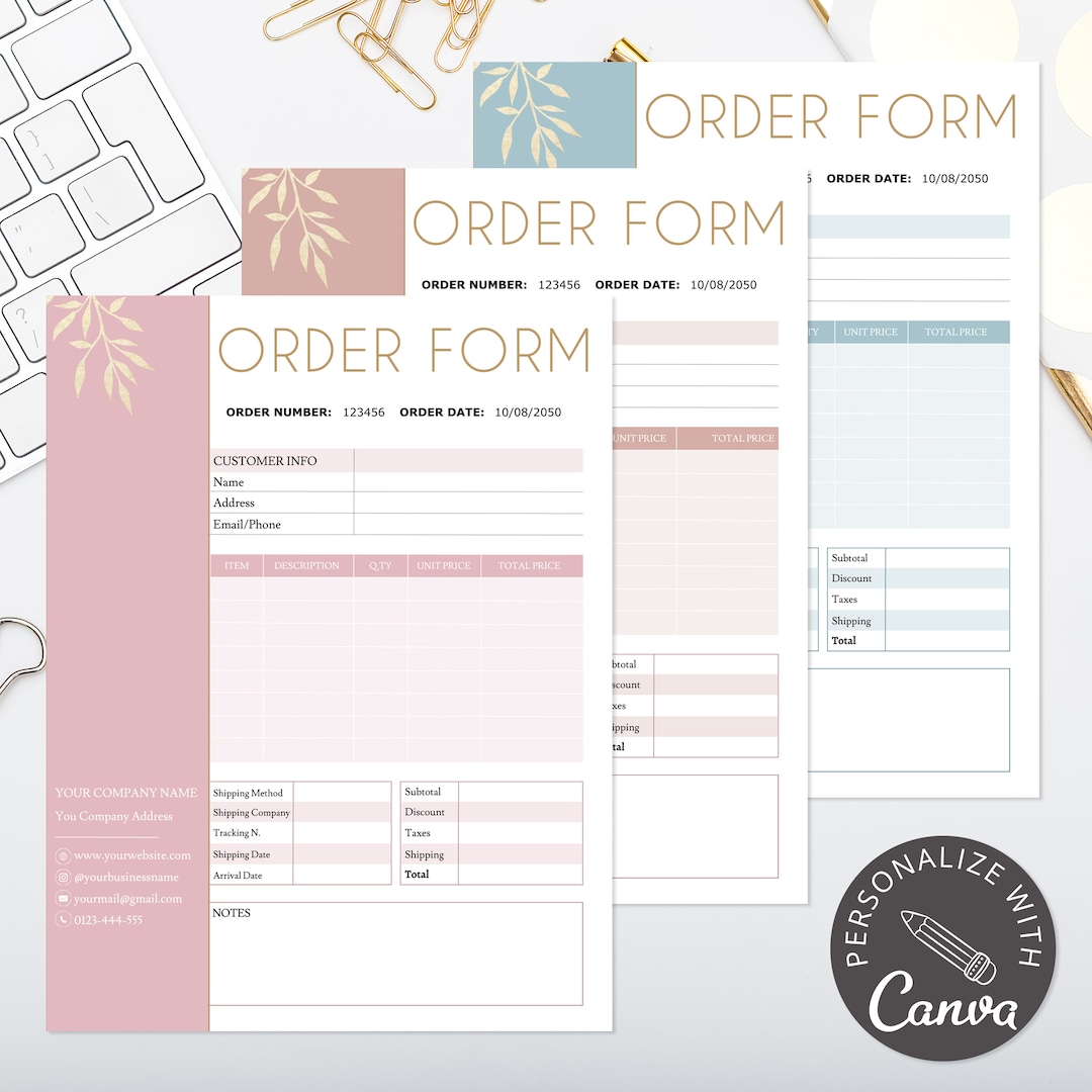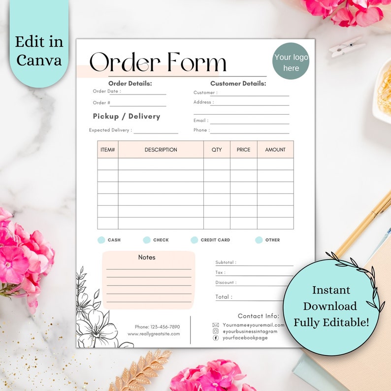 Order Form Template Editable on Canva Printable Pink Small Etsy