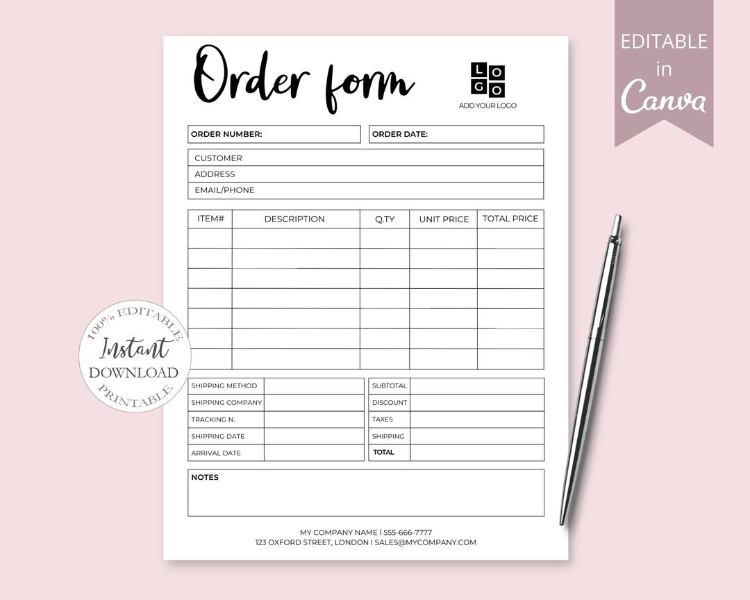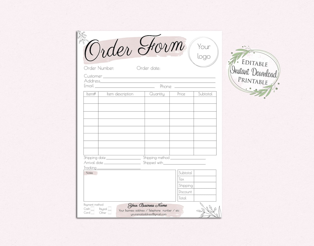 100% Editable Order Form Template Small Business Order Forms Etsy