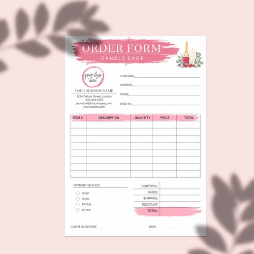 Candles Order Form Template Handmade Candle Business Invoice Etsy