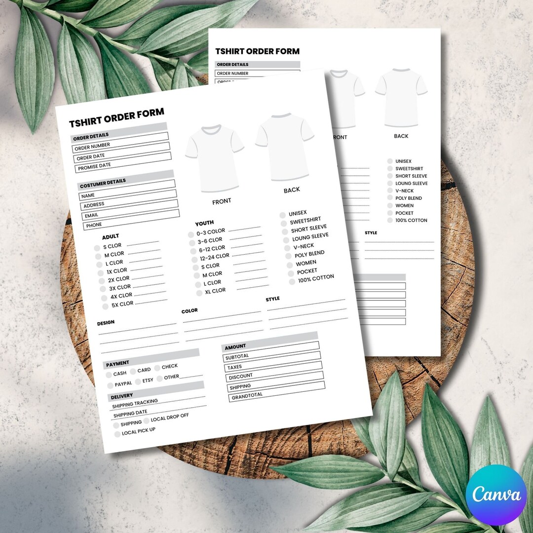 Editable T shirt Order Form Template Printable Small Business Order