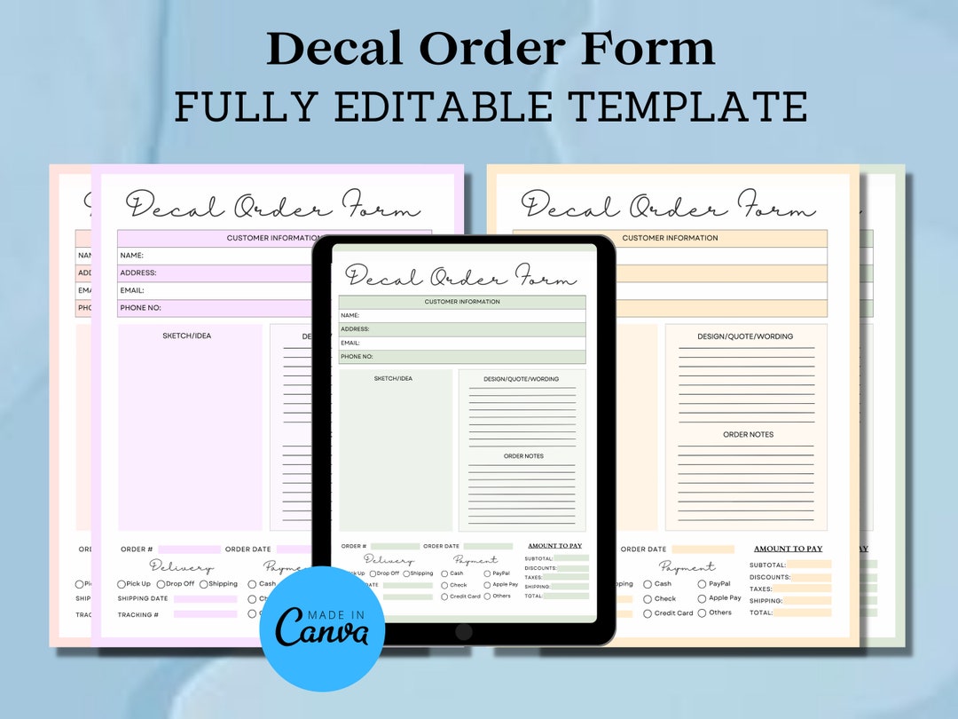 Editable Decal Order Form Template Printable Decal Order Form Template