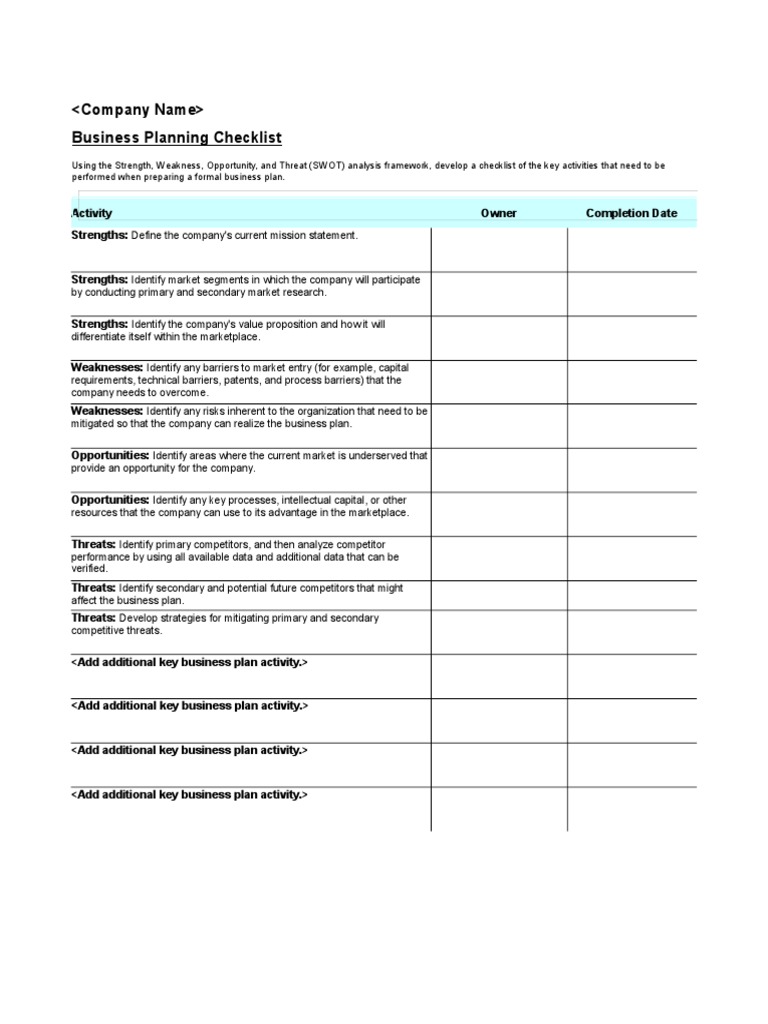 Business Planning Checklist Template