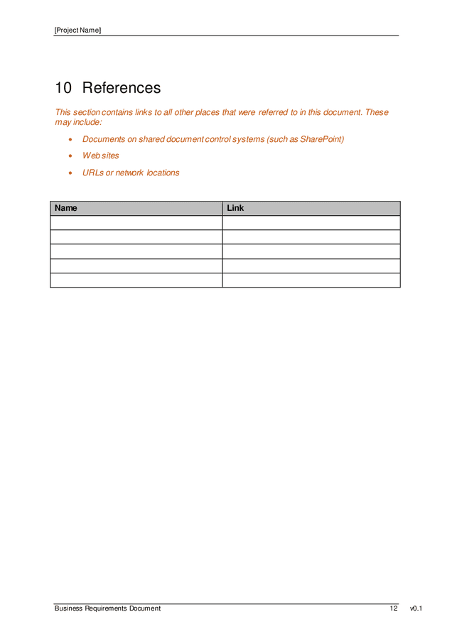 Business requirements template in Word and Pdf formats page 12 of 14