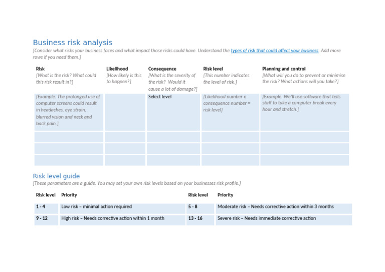 Business Risk Analysis Template prntbl concejomunicipaldechinu gov co