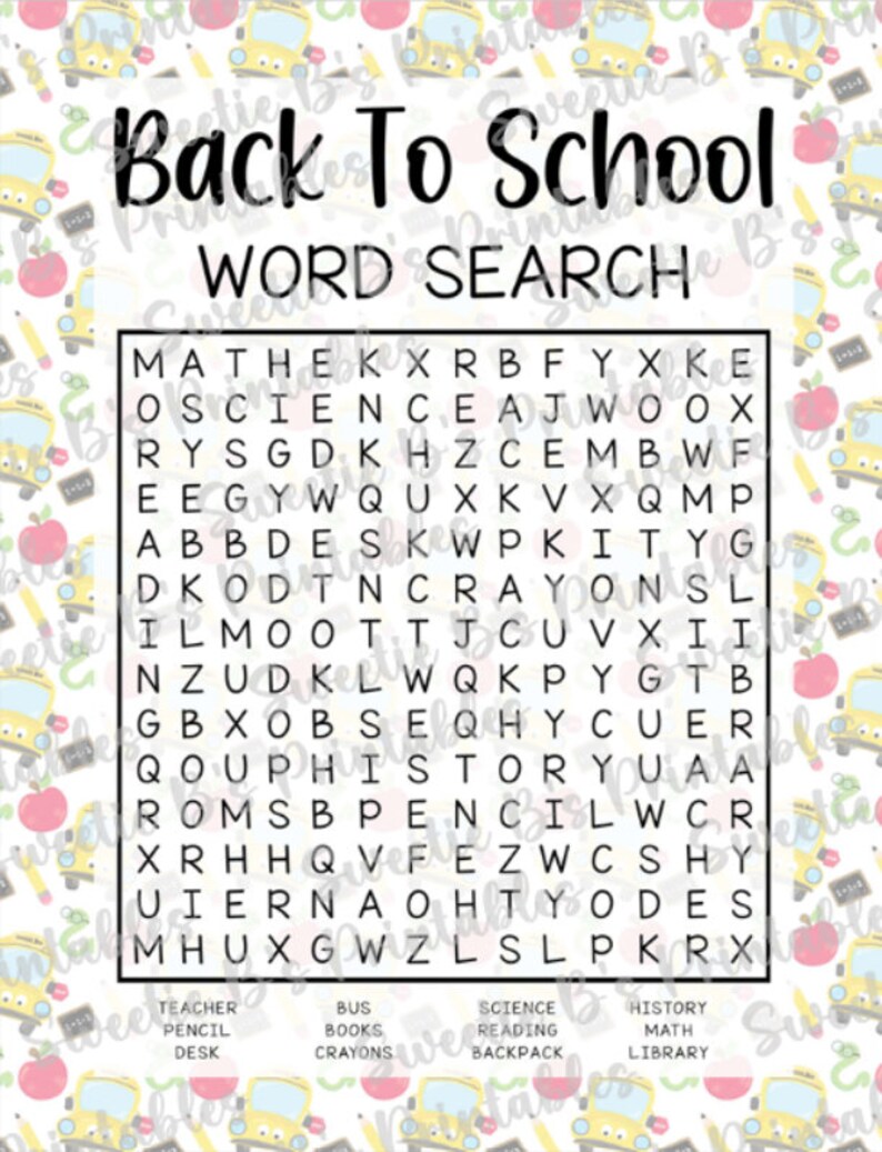 INSTANT DOWNLOAD Back to School Word Search Game Printable Back to