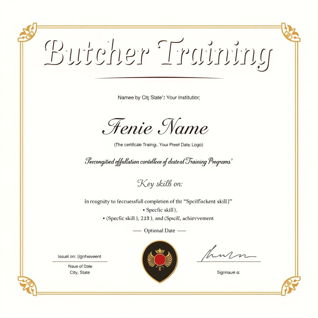 Professional Butcher Training Certificate Template