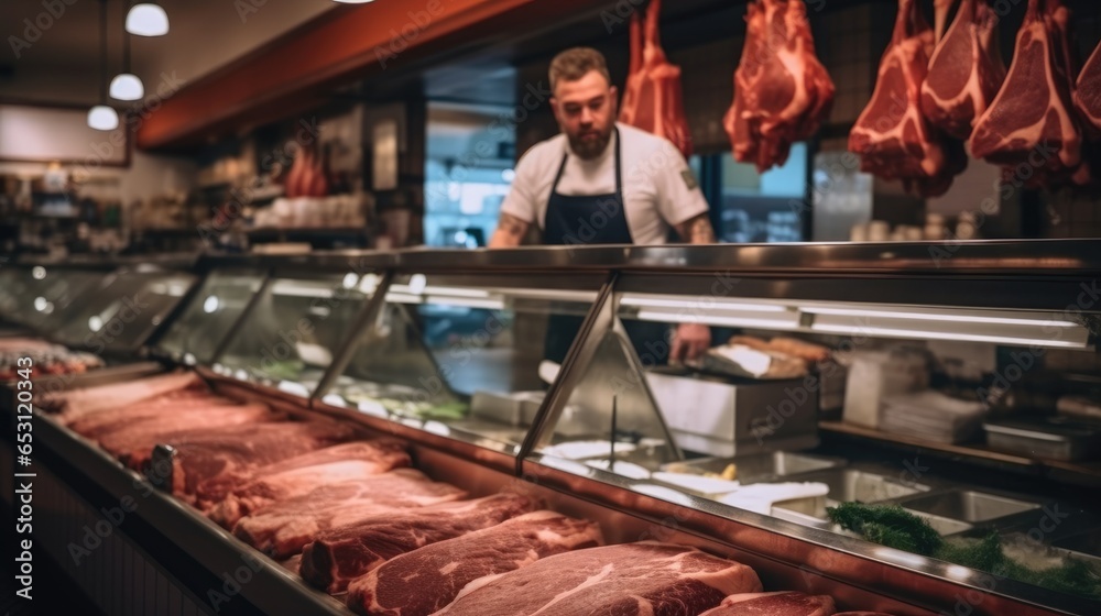 Butcher shop Showcasing a perfectly cut the steak in half within a