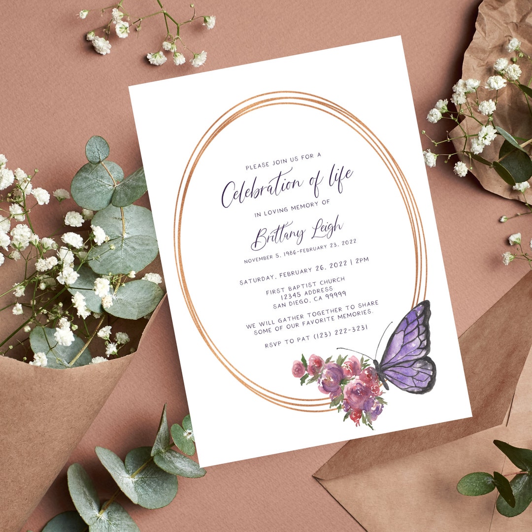 Butterfly Invitation Celebration of Life Funeral Template Funeral
