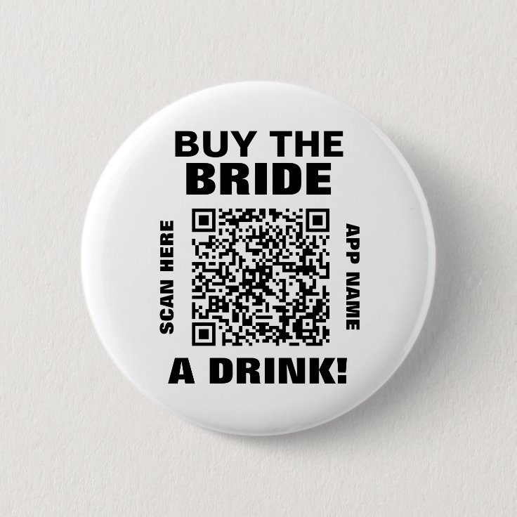Bachelorette Scannable QR Code Buy The Bride Drink Button Zazzle