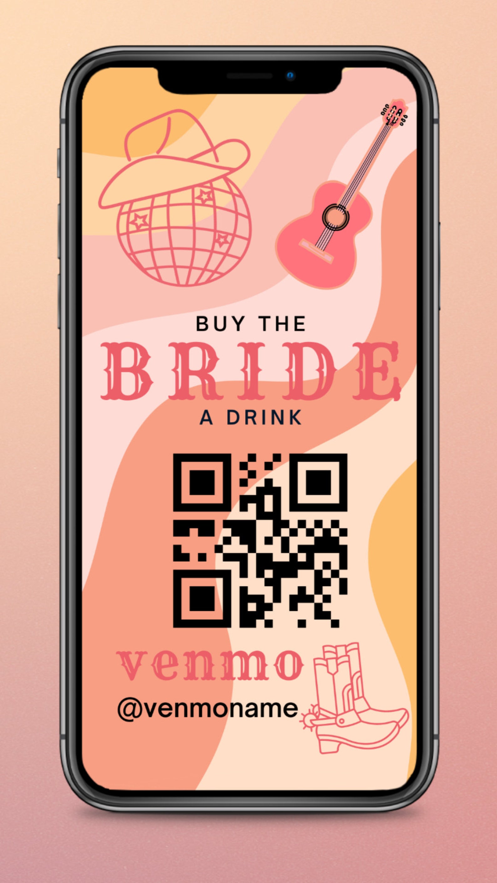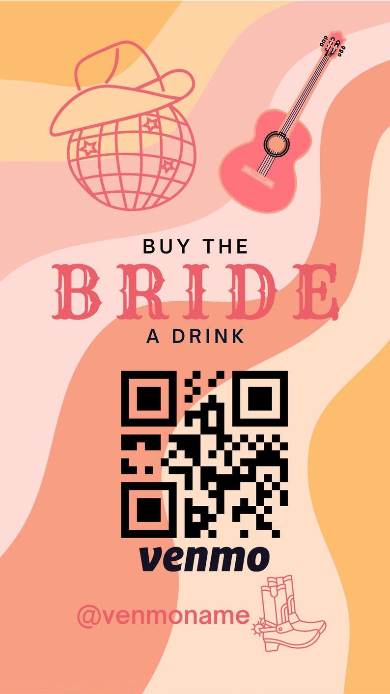 Buy the Bride a Drink Venmo Template Bach Party QR Code Card Buy the