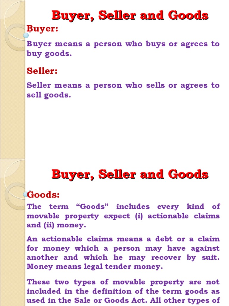 Buyer Seller and Goods PDF Sales Goods