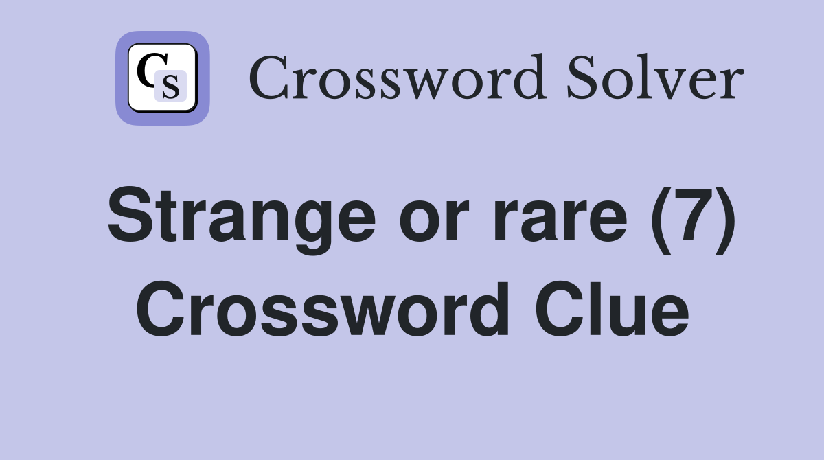 Strange or rare (7) Crossword Clue Answers Crossword Solver
