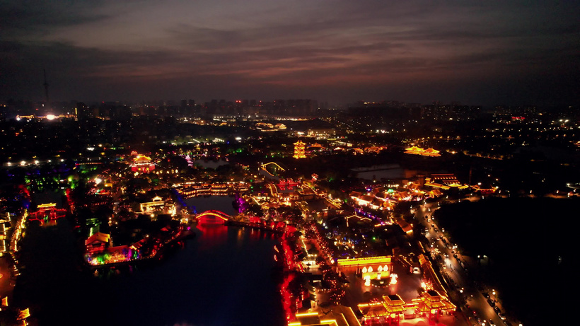 河北开封清明上河园5A景区夜幕降临航拍mp4格式视频下载 正版视频编号4155368 摄图网