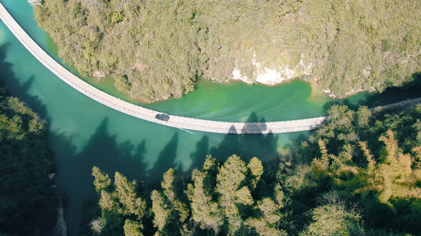 4K湖北恩施狮子关汽车行驶网红浮桥上航拍视频mp4格式视频下载 正版视频编号4074782 摄图网