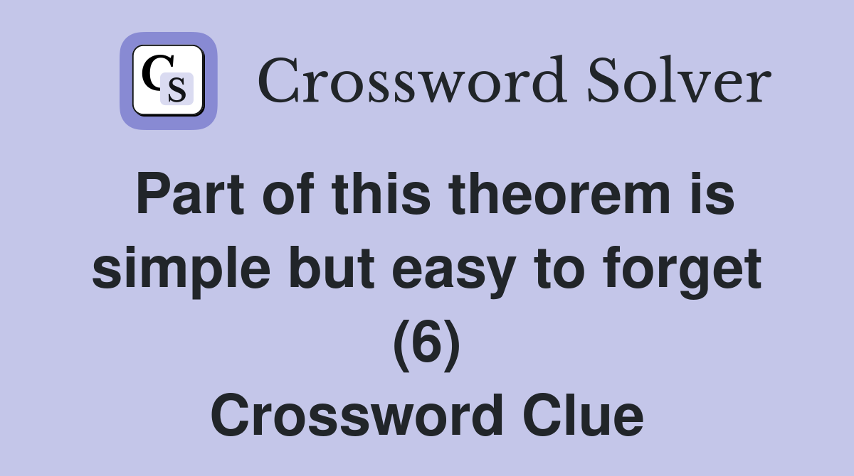Part of this theorem is simple but easy to forget (6) Crossword Clue
