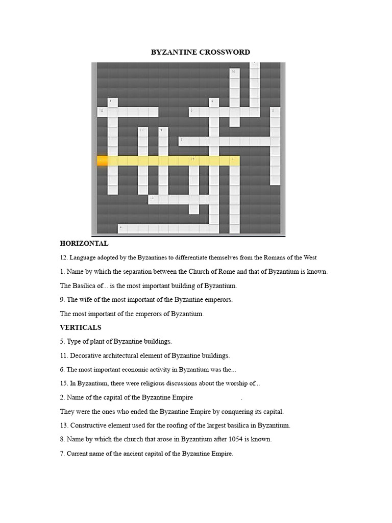 Byzantine Crossword PDF
