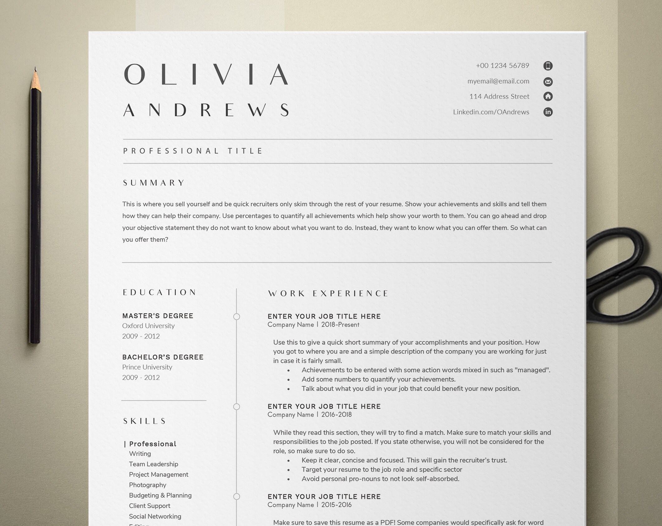 Cv Template Resume Templates Professional and C Level Resume Etsy