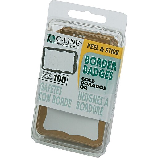 C Line Name Badge Gold Border 3 1/2 quot x 2 1/4 quot (92266) Staples