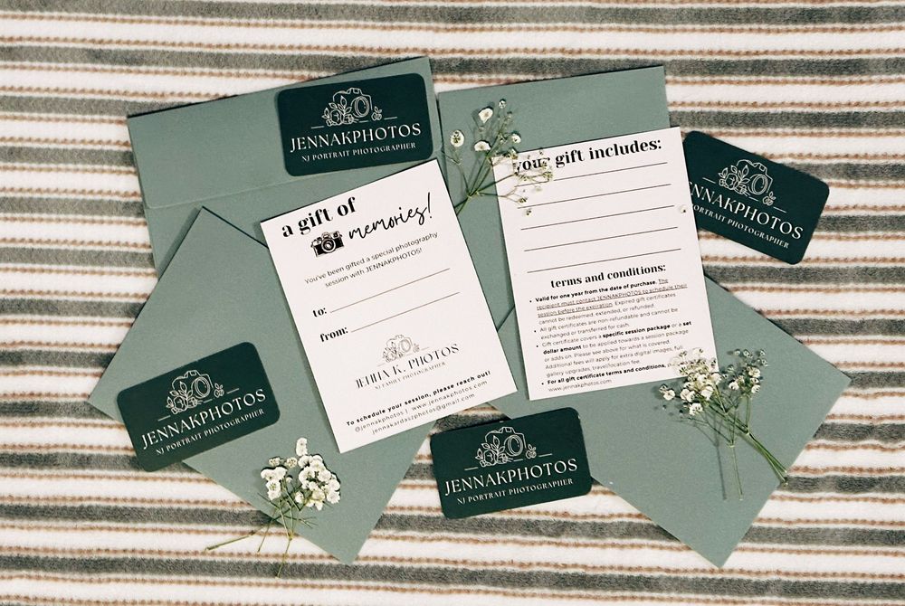 Give the Gift of Photos With a Gift Certificate JENNAKPHOTOS NJ