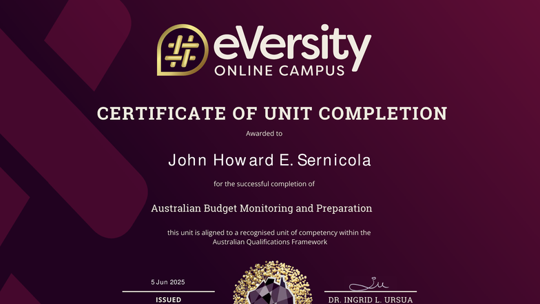 Certificate of Completion: Australian Budget Monitoring Prep (Pace 6