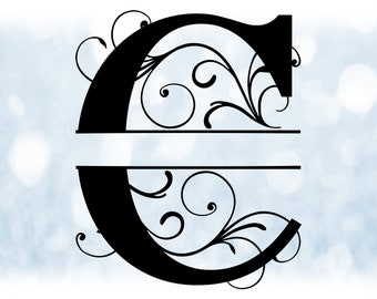 Floral Svg Split Monogram Files Letter C calligraphy Font Etsy