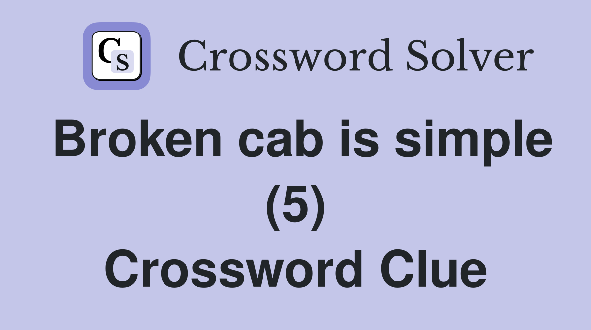 Broken cab is simple (5) Crossword Clue Answers Crossword Solver