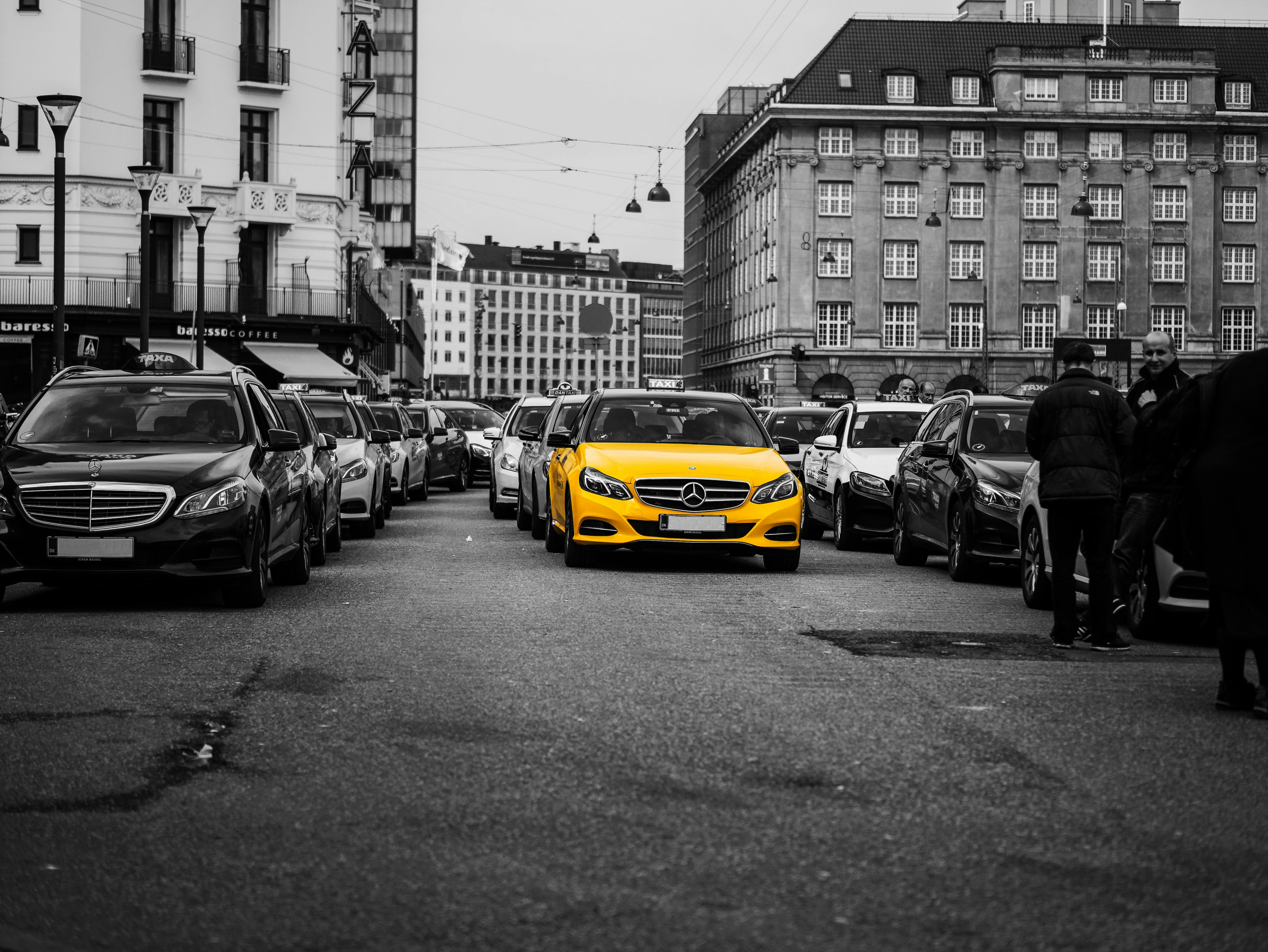 Free Image of Yellow Taxi Cabs Parked in Queue on City Street Freebie