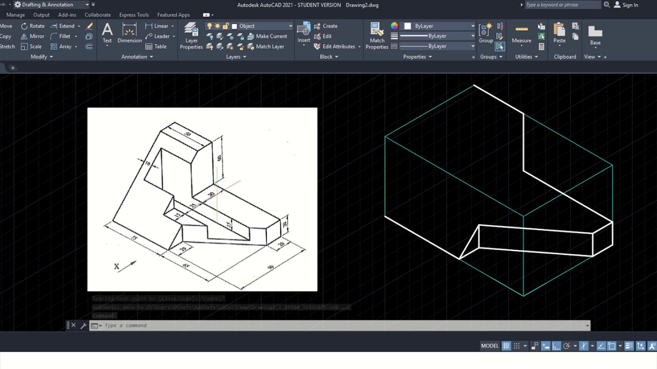 EXAMPLE ON ISOMETRIC PROJECTION IN 2D CAD YouTube