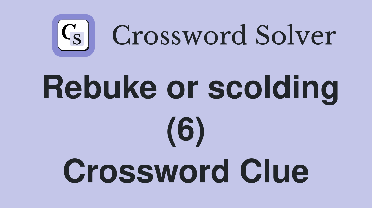 Rebuke or scolding (6) Crossword Clue Answers Crossword Solver