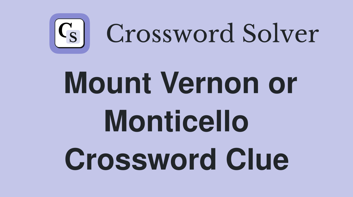Mount Vernon or Monticello Crossword Clue Answers Crossword Solver