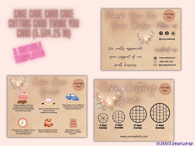 Pink Cake Cutting Guide Bakery Bundle Editable Cake Care Card Cake