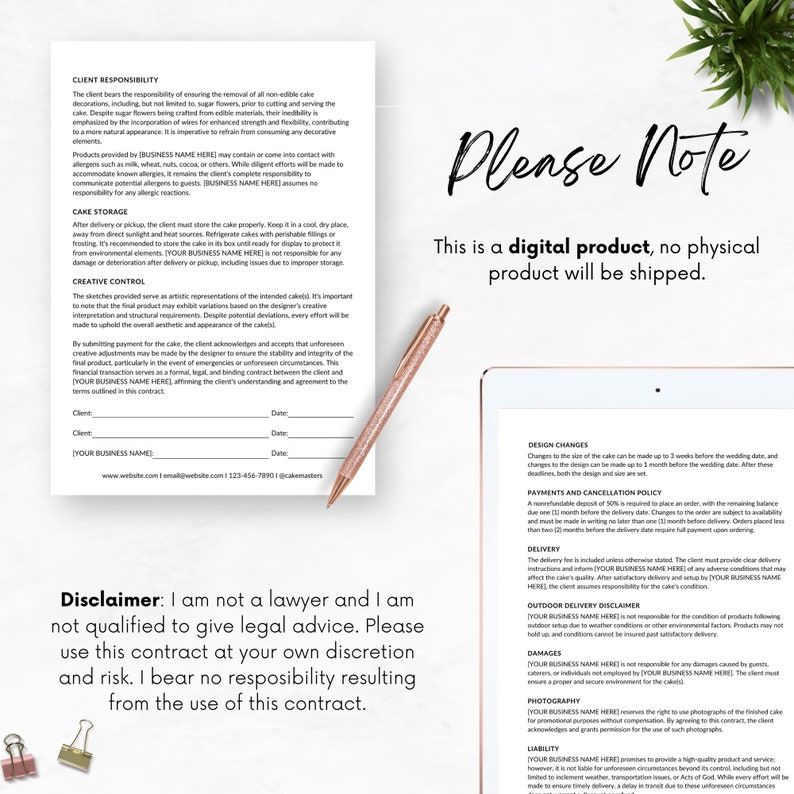 Wedding Cake Contract Template Editable Bakery Client Agreement