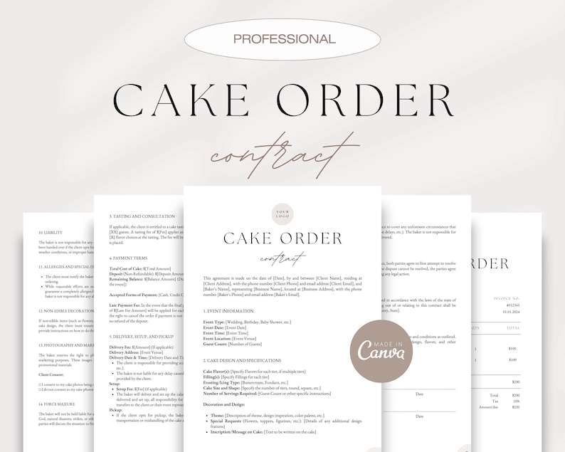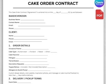Cake Order Contract Template Editable Custom Cake Agreement Bakery