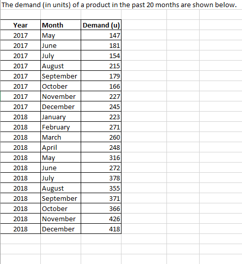 Solved The demand (in units) of a product in the past 20 Chegg com