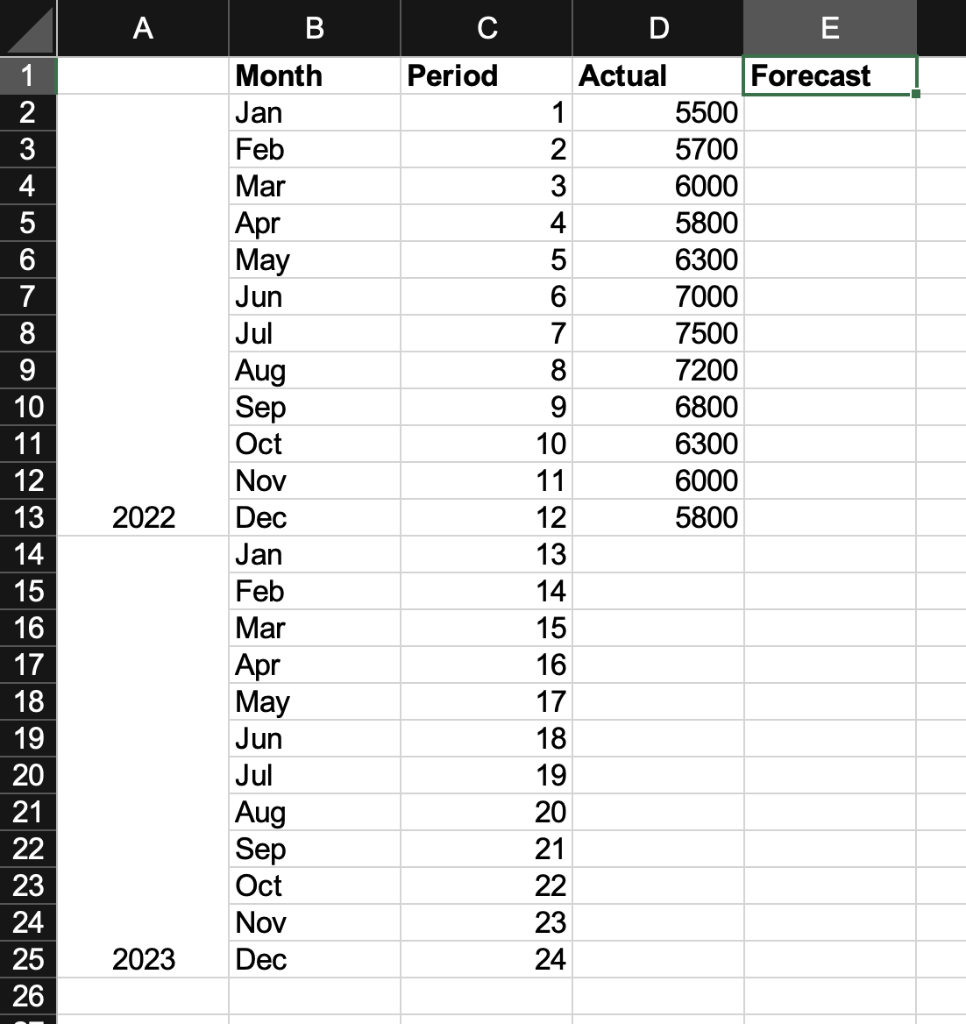Solved A) Use the data below to calculate four forecasts: 1) Chegg com